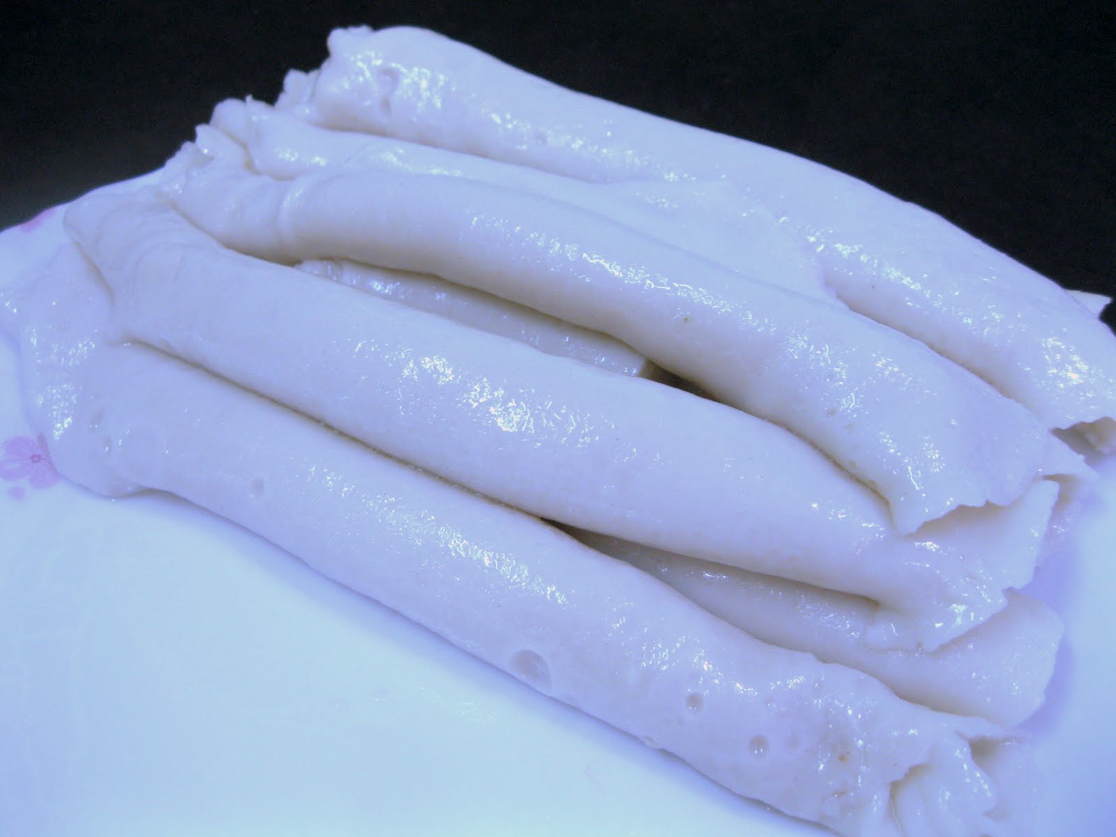 Biarkan seketika sebelum digulung - supaya laksam kelihatan licin dan cantik.